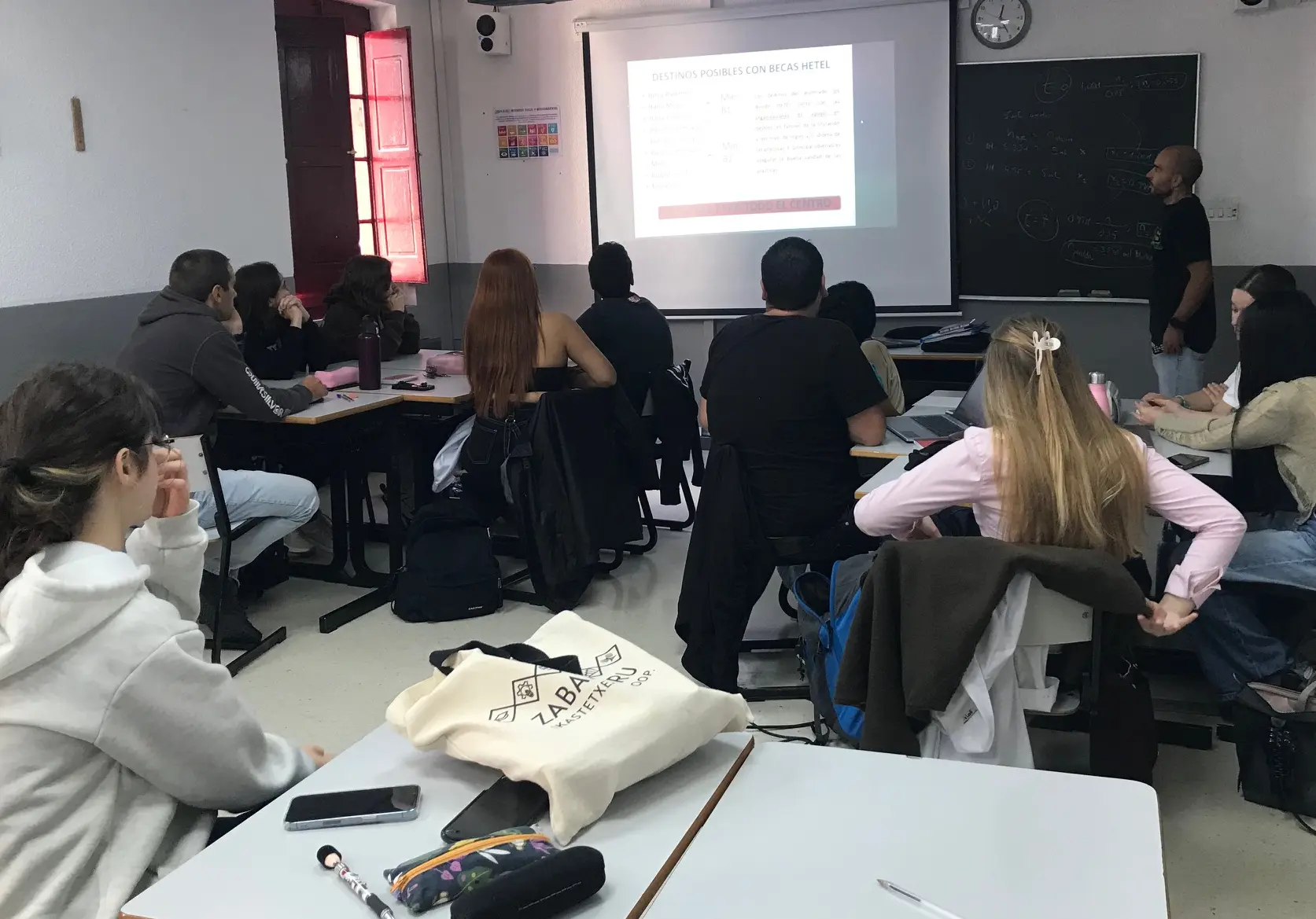 En la sesión informativa, el coordinador de Erasmus+ explicó los principales aspectos del programa, como las fechas previstas, los destinos europeos disponibles, los tipos de beca y los requisitos de participación.