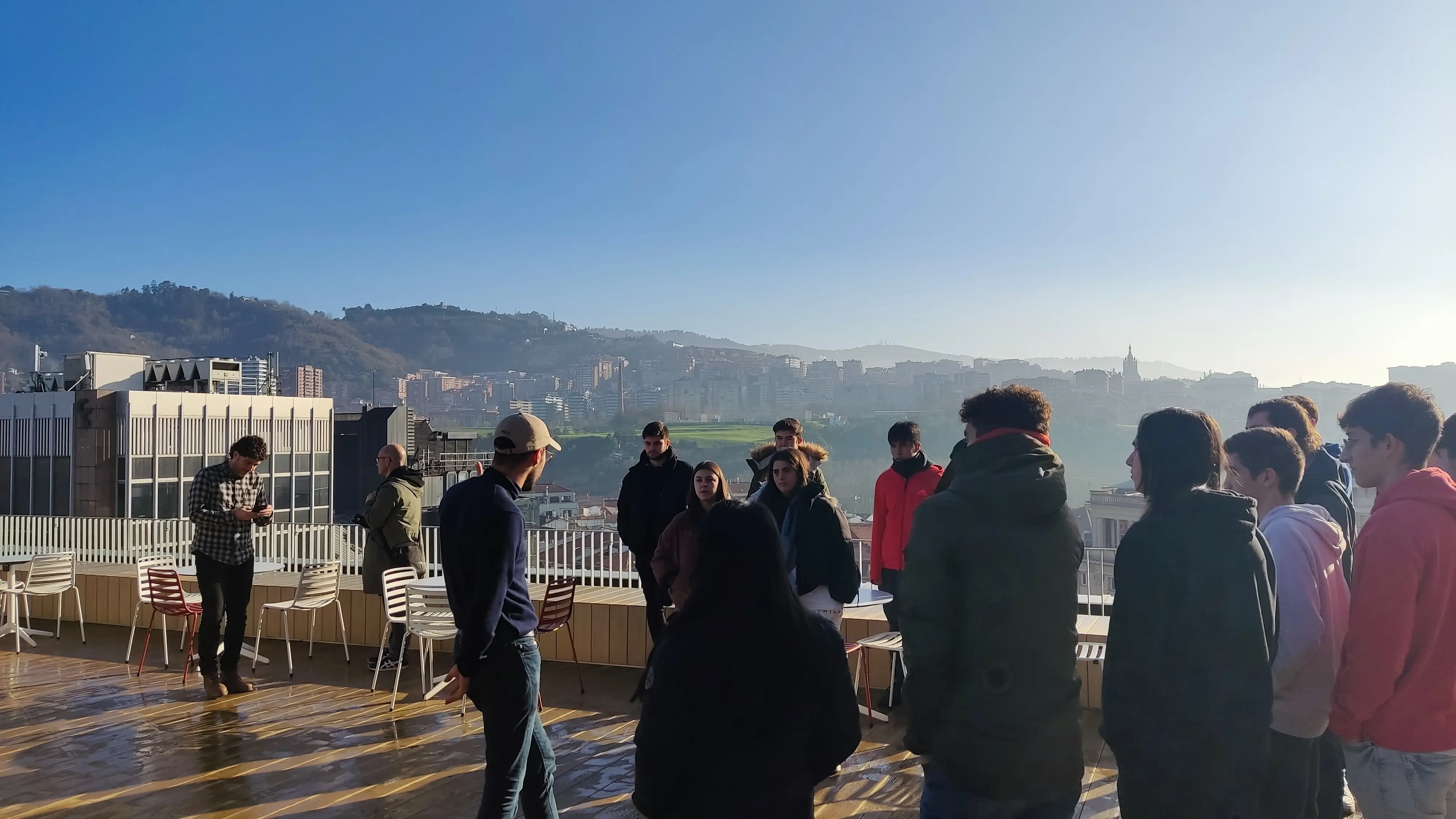 Hemos contado con la presencia de Aitor Ibarguen, de la empresa Elecnor, quien ha dado un repaso a las tendencias del sector, ha presentado la visión de las posibilidades que ofrece el sector para el alumnado que pronto daremos el salto al mercado laboral y nuestro profesor Eder, como coordinador del proyecto, lo ha presentado a todos y todas las participantes.